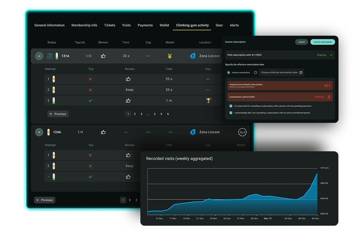 A user isn’t just a customer—they’re a climber who lives your gym. With Lizcore® gymOS, you centralize what each person climbs, the gear they use, and their date of birth to deliver more precise service, relevant communication, and segmented marketing. User feedback becomes data you can grow with.